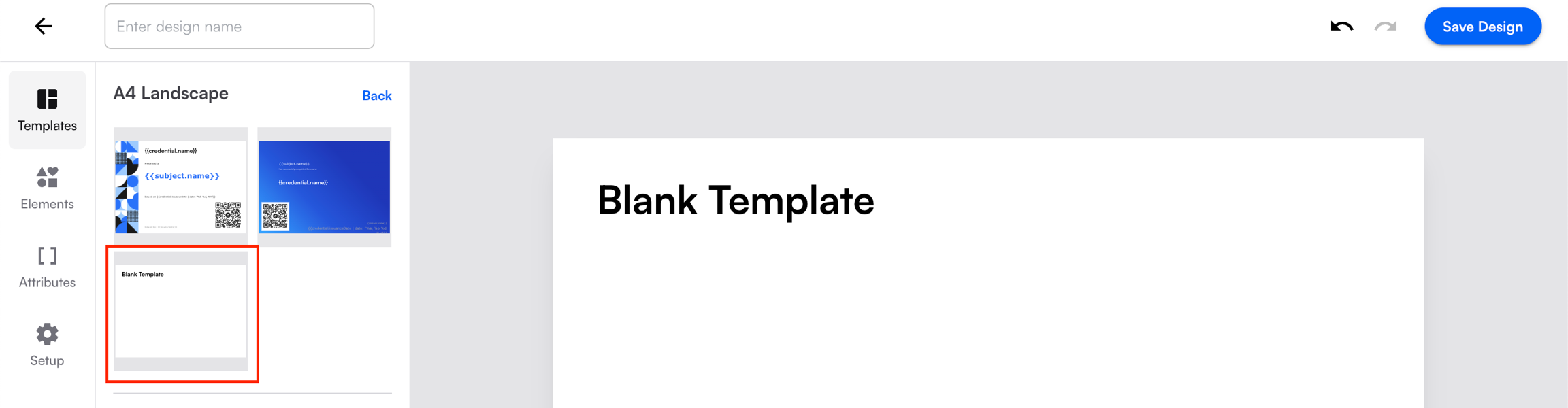 You can choose a pre-made template or you can import an existing PDF design. Click Import PDF Credential, and select the PDF file.