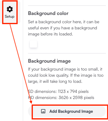 You can also add a custom background image. To add a background image for your design go to Setup and click Add Background Image.