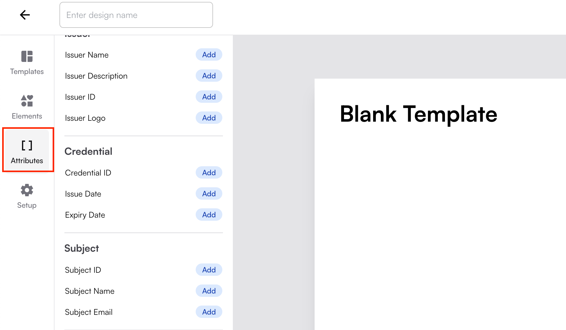 You can choose which certificate attributes you want to appear on your template. The actual attribute details will be filled in on the issued credentials.