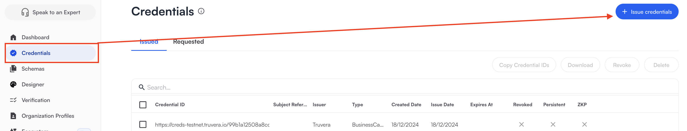 In the Credentials menu, click Issue credentials.