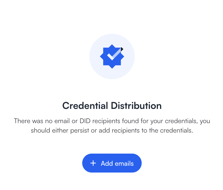 If you do not have or want to use DIDs for the credential distribution you will need to enter an email of the recipient or persist the credential.