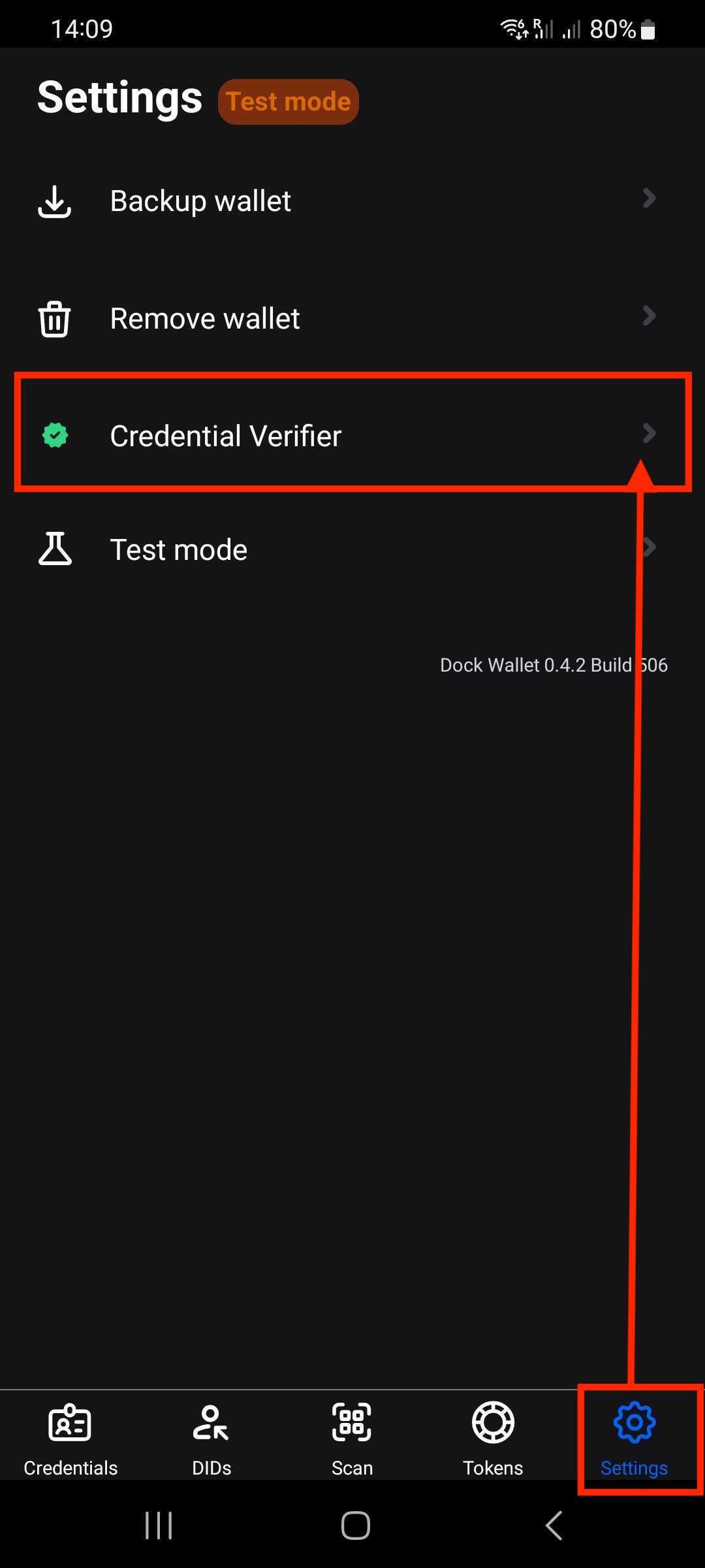 Go to Settings and choose Credential Verifier.